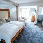 The allergy-friendly rooms are appointed with sound-proofed windows, and such modern facilities as a flat-screen TV with satellite channels. Guests can use a bidet, along with a shower cap.